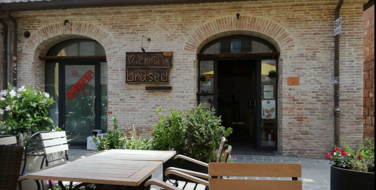 Nel fascino senza tempo di Santarcangelo di Romagna, tra i vicoli lastricati del centro storico, si apre una porta sul gusto autentico: Vicolo di Brused. Questa enoteca e osteria racconta la tradizione romagnola con uno stile unico, accogliente e conviviale, dove ogni dettaglio – dai tavoli rustici alle luci calde – è pensato per far sentire a casa chiunque varchi la soglia.